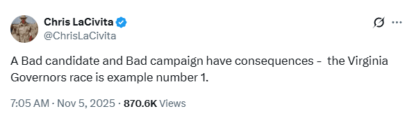 Some Republicans also blamed individual campaign failures, pointing specifically to Lt. Gov. Winsome Earle-Sears’ defeat in Virginia — a blow to Gov. Glenn Youngkin’s future ambitions.