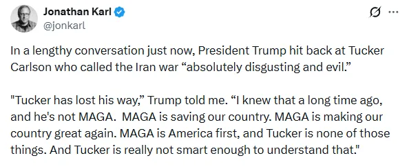 Trump responded to Carlson’s criticism during an interview days later, saying the conservative commentator had “lost his way” and was no longer aligned with the “Make America Great Again” (MAGA) movement.